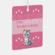 Ornement métallique recto verso. Une idée cadeau pour un nouveau bébé, avec un léopard mignon, des étoiles et des pois. Personnalisez avec un nom / shhh 'nom de bébé' est en train de dormir. L'expression "Sweet Dreams" est à l'arrière. Rose et blanc.
