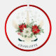 Joli Noël Floral Unicorn Fête Ornements personnalisés présente une magnifique licorne de Noël fleurie avec poinsettias comme couronne. Personnalisez avec votre nom en modifiant le texte dans la zone de texte. Fabuleux pour le sapin de Noël, comme cadeaux et Noël favorise. Conçu par ©Evco Holidays www.zazzle.com/store/evcoholidays