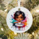 Décor de Noël personnalisé avec de l'aquarelle hispanique ou latino latina l et un message personnalisé sur le dos avec une jolie bordure en or.