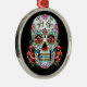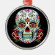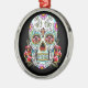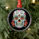 Ronde ornement premium avec l'image d'un Jour du crâne mort décoré de fleurs roses et de vignes, roses rouges et une croix avec quatre gouttes de sang sur le noir. Le dos est noir avec du texte facultatif. Le Jour des Morts, ou Fête de toutes les âmes, est célébré le 2 novembre dans différents pays européens et latino-américains. Au Mexique, la période des festivités de la Fête de l'Âme est célébrée pendant plusieurs jours, y compris la Toussaint le 1er novembre. Voir la collection complète de l'Ornement du Mexique dans la section HOME.