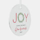 Élégant ornement de vacances avec "JOY" avec les lettres "J" et "Y" dans une police sans serif rouge et une feuille de verdure aquarelle peinte comme lettre "O". Ci-dessous est "Notre premier Noël en tant que grands-parents" avec l'année. Ce joli ornement est un cadeau parfait pour les nouveaux grands-parents.