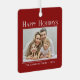 Des ornements cadeaux de vacances modernes avec un style élégant. Ces ornements de vacances extraordinaires offrent un accueil typographique élégant qui dit : "Joyeuses fêtes, votre nom de famille et l'année". Le design personnalisé présente votre photo préférée ou votre photo de famille sur le devant, mis en évidence par un cadre moderne en dégradé blanc sur un arrière - plan rouge royal. L'arrière de l'ornement dispose d'un espace texte pour votre message personnalisé. Fait un cadeau de conservation fantastique.