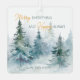 Arbres d'hiver aquarelle dans des nuances de vert associés à des écritures et à une typographie moderne sur un ornement métallique.
