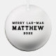 L'ornement de gardien de but de crosse avec le design original de Noël "Joyeux Lax-mas". Pour créer une collection de Noël géniale, éditez le texte pour ajouter le nom du gardien et l'année.
