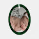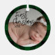 Ce joli ornement de Noël personnalisé présente un thème photographique de keepsaké. Un échantillon de photo de bébé est placé dans le centre que vous pouvez personnaliser pour inclure la photo personnalisée de votre bébé ou autre photo de votre choix. Le titre "Premier Noël" est imprimé à gauche dans une police de caractères élégante, suivi d'un exemple d'année. La bordure est ornée d'un cadre rustique et verdoyant en plaid.