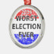 Les pires candidats. Cercle en rouge, bleu et blanc, texte en noir avec contours blancs. Effet désordonné appliqué au design.
