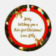 A sweet Christmas ornament with a little kitten playing with a gold ornament on the Christmas tree. On the back is a cute cat pun and you can personalized the names.