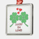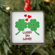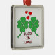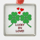 Heureux amoureux. Dessins de trèfle à quatre feuilles avec des formes cardiaques flottant sur eux.