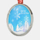 Ornement En Métal Maison Blanche Bleue Neige Joyeux Noël