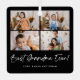 Célébrez le lien spécial avec votre grand-mère cette saison des Fêtes avec notre "Meilleure grand-mère !" décorations arbres de Noël. Doté d'un charmant style manuscrit, cet ornement minimaliste présente quatre photos chères, vous permettant de la personnaliser de manière unique. Il y a même de l'espace au fond pour un message ou des noms sincères, ce qui en fait un cadeau parfait pour papi qu'elle chérira pour les années à venir.