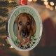 Ornement en métal commémoratif de Noël pour animaux de compagnie. Arrière - plan vert Sage, votre précieuse photo d'animal de compagnie et une décoration de vacances avec les cônes de pin, les baies sèches ang verdure. Le nom et la date de votre animal de compagnie décédé sont customisés par vous. Cet ornement en métal massif sera l'un de vos décors les plus précieux. Chaque Noël, vous l'accrochez à l'arbre presque comme votre animal de compagnie décédé est avec vous, du moins dans votre mémoire. Quand vous l'accrochez à l'arbre, c'est comme une célébration de la vie et tous les bons souvenirs vous traverseront.