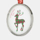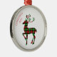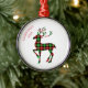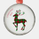 This Christmas premium metal ornament is shown here in white with text of Merry Christmas and print of a plaid deer. Text of Merry Christmas curved on one side of the top along with this year's date of 2025.