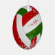 Ce joli ornement de volley-ball présente l'image réaliste d'un volley-ball qui a des panneaux rouges, verts et blancs et un arrosage de minuscules étoiles de faux parties scintillant argent, sur lequel vous pouvez customiser le nom du joueur sur le front et l'année commémorative sur le dos - par katz_d_zynes