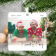 Célébrez votre premier Noël de mariage avec cet ornement de photo minimaliste moderne. Le texte dit "Marié & Joyeux" en écriture manuscrite noire tendance. Remplacez facilement l'exemple d'image par votre photo préférée, et ajoutez vos noms et l'année en haut. Un écran de dégradé blanc aide à faire apparaître la superposition de texte.