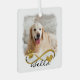Créez un souvenir photo pour animal de compagnie garde saké ornement en métal carré d'un chien bien-aimé avec 2 photos (une de chaque côté) avec un design à boucle infinie incorporant une empreinte et un coeur de chien en or, noir et blanc. OPTIONS : Choisissez parmi d'autres formes et styles ornementaux sur la page de commande. ASSISTANCE : Pour obtenir de l'aide sur la modification ou la personnalisation de la conception ou le transfert de la conception à un autre produit, contactez le concepteur AVANT DE COMMANDER via l'onglet MESSAGE Conversation Zazzle ci-dessous ou envoyez un courriel à makeitaboutyoustore@gmail.com.