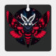 Le design présente un graphisme stylisé d'un papillon de nuit avec des ailes expansives sur fond cosmique. Le papillon de nuit a des ailes rouges et noires, détaillées et symétriques, aux accents blancs qui ressemblent à des rayures de tigre. Son corps est allongé et recouvert d'une texture de fourrure noire, et il a deux grands yeux ronds blancs qui se détachent contre son visage sombre. L'arrière - plan présente une scène spatiale profonde avec des étoiles et des nébuleuses dans les tons bleu et violet, ajoutant une qualité éthérée au design.