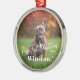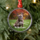 My First Christmas Custom Name Photo Holiday metal ornament with your pet’s name in a bold white serif font, the words "My First Christmas" and custom year below in a classic serif font.
