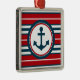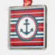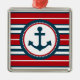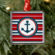 Design nautique avec décoration d'ancre en forme ronde sur arrière - plan rayé rouge, bleu et blanc