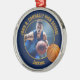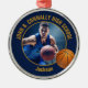 Ornement En Métal Navy Blue Gold Basketball Player Photo Christmas