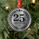 Style métal brossé en argent ornement de Noël 25e anniversaire avec un logo d'entreprise. Design décoratif avec une branche de laurier et des étoiles. Le logo peut être modifié pour le texte en cliquant sur le bouton pour modifier la conception.