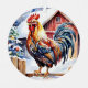 Joli ornement de Noël avec un poulet à l'aquarelle debout près d'une clôture en bois rustique devant une grange.