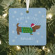 Ce joli ornement de Noël présente un daschund de dessin animé avec des flocons de neige sur un arrière - plan bleu clair. De l'autre côté, vous pouvez ajouter la photo de votre chien. Vous pouvez personnaliser les deux côtés avec le nom de votre chien.