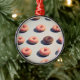 Ce design présente un beigne au chocolat parmi un grand groupe de beignets roses.