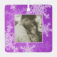 Belle, moderne et tendance motif festive avec des flocons de neige blancs sur un arrière - plan violet avec photo de famille personnalisable et script 'Our First Christmas'. Le design comprend le nom de famille et l'année facile à personnaliser. Elle est ornée d'un arrière - plan violet et d'un motif blanc de flocon de neige qui couvre sa surface. Les flocons de neige sont détaillés avec des lignes fines, créant un effet de dentelle complexe. Le texte est écrit dans un script fluide et cursif qui ajoute une touche personnalisée à la décoration. Le style général est charmant et gai, avec un thème de vacances clair. Un cadeau de Noël parfait, personnalisable avec votre propre texte. Parfait pour un couple qui passe leur premier Noël ensemble, un gardien qui commémore leur première saison de vacances ensemble comme un couple marié, à acheter après le mariage pour célébrer ce moment spécial.