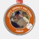 This cool customized high school baseball player photo gift features white typography of your team and player name on an orange Christmas ornament with a ball. Personalize with your student's photograph and class year as a proud sports parent for a great commemorative keepsake. mom and dad can wear these buttons to sports games.