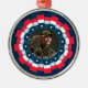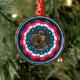 Keep your hero close to your heart and on display with this Custom Photo USA Military Ornament. This premium circular ornament features a dynamic, 3D-effect pleated ribbon border in patriotic red, white, and blue, encircling a navy blue frame filled with white and teal stars. The centerpiece is a dedicated photo upload area, allowing you to feature a portrait of an active-duty soldier, a beloved veteran, or a special military memory.