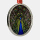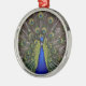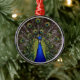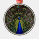 Stunning, vibrant colored peacock display on alternative Christmas ornament.
