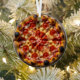 ornement de Noël avec un stickers pizza pepperoni réaliste. Sur le dos est un joli jeu de mots pour Noël et pizza.
