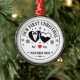 Celebrate the magic of your first Christmas as a married couple with this beautiful "Our First Christmas Mr. & Mrs." personalized ornament. Featuring an elegant black-and-white design with a tuxedo heart and a dress heart, a sweet "Together 2025" detail, and festive snowflake accents.
