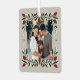 Ce bel ornement photo de Noël présente un cadre floral et verdoyant dessiné à la main dans des couleurs de Noël classiques, vert foncé, rouge bordeaux, et ivoire sur un arrière - plan beige de sable. Fonctionne bien avec de nombreux thèmes de décoration - rustique, ferme, contemporain, traditionnel ou vintage. Facile à customiser avec une photo préférée (et fait aussi un grand cadeau)!