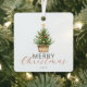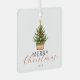 Un simple ornement en métal rustique présente un pin de Noël aquarelle dans un panier. Associé à une typographie moderne et script et à votre photo préférée.