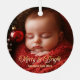 Photo de bébé personnalisée ornement de Noël modèle double face. Ajoutez la photo de votre bébé à ce joli ornement de Noël personnalisé. Modifiez les noms et la date dans la zone de personnalisation.