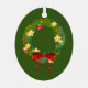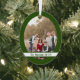 Votre photo, nom de famille et l'année encadrée en vert sur le devant. Le dos a une couronne de Noël. Crédit photo : Photographie © Storytree Studios, Stanford, CA