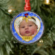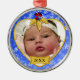 Ajoutez facilement la photo de votre nouveau bébé à ce joli ornement de Noël Bébé Bleu doré Snowy avec l'année de naissance. Utilisez la boîte à images pour télécharger rapidement votre photo. Cliquez sur le lien Customiser plus loin pour ajuster la photo au besoin.