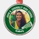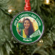Ce cadeau photo de pom-pom girl cool customisé au lycée présente une typographie blanche du nom de votre équipe et du joueur sur un ornement de Noël vert avec un mégaphone CHEER. Personnalisez avec la photo de votre élève et l'année de classe en tant que parent encourageant fier. Un grand cadeau pour une mère ou un père fier.