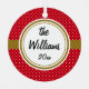 Un motif suisse moderne aux accents dorés rouges et blancs orne cet ornement en métal rond, avant et arrière. Modifiez facilement le texte à l'avant et ajoutez votre salutation personnelle à l'arrière en utilisant le Modèle simple fourni. Fait d'aluminium couché de haute qualité et léger pour faciliter l'envoi comme cadeau. Pour plus d'informations sur la taille et les matériaux, reportez-vous à la section "À propos de ce produit" à côté.