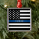 Ce drapeau américain à la fine ligne bleue noire et blanche de la police porte un nom d'exemple que vous pouvez personnaliser avec le nom de votre officier. Parfait pour Noël et autres occasions spéciales.