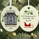 Célébrez le premier Noël dans votre nouvelle maison. Une maison stylisée décorée avec du faux-pied sur le devant avec votre nom de famille et l'année. Le dos a votre nouvelle adresse.