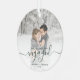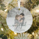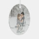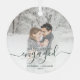 Commémorez votre fiançailles avec ce magnifique ornement de gardien moderne. Le texte vert foncé dit "Notre premier Noël engagé", avec le mot "engagé" dans un élégant script d'écriture manuscrite avec des fioritures avant et après. Remplacez l'exemple d'image par votre photo préférée, et ajoutez vos noms et l'année. Un filtre dégradé blanc permet de faire apparaître le texte.
