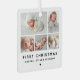 Moderne 5 photos multiples sur une grille affichant vos photos de nouveau-nés préférées pour leur premier ornement en métal de Noël.