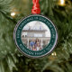 Célébrez la joie de votre nouvel endroit avec une photo personnalisée "Premier Noël dans notre nouvelle maison" ornement en métal rond vert et blanc. Tout le texte sur ce modèle est simple à personnaliser. (AVIS DE CONCEPTION D'IMAGE ET DE TEXTE : 1) Pour ajuster la position du libellé, ajoutez des espaces au début ou à la fin. 2) Pour centrer la photo exactement comme vous voulez, la rogner en forme de carré avant de télécharger sur le site Zazzle.) Le design vert et blanc festif présente une typographie moderne et minimaliste du nom et de l'année, et 1 photo de votre choix. Cette tenue de famille unique ajoute une touche élégante à la décoration de maison de Noël ou fait une idée de cadeau de réacteur ménager réfléchie. Il n'y a pas d'endroit comme une nouvelle maison pour les vacances !