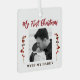 Le premier Noël de bébé avec papa unique ornement d'arbre de conservation avec branches de baies rouges, vos 2 photos personnalisées, et texte de script de typographie moderne rouge. ++++++++++ Peut être un beau cadeau de Noël pour un nouveau père.