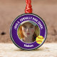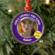 This cool customized high school softball player photo gift features white typography of your team and player name on a Christmas ornament with a ball on a purple background. Personalize with your student's photograph and class year for a commemorative keepsake.