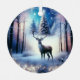 Ornement de Noël personnalisé. Ai aquarelle illustration d'un joli cerf assis dans une forêt enneigée enchantée pays des merveilles hivernales.