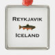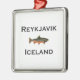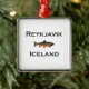 Cet ornement orienté de Reykjavik Islande de pêche célèbre une des villes les plus populaires des hemishphere du nord. Reykjavik est la capitale de l'Islande sa plus grande ville. Cette ville historique est célèbre pour ses poissons et tous autres fruits de mer, bâtiments colorés, culture nautique, arts, piscines thermiques, et beauté naturelle. Incluse dans cette conception est une icône de char arctique.