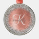 Personnalisez facilement ce design tendance et chic des ornements de Noël avec une jolie parties scintillant brillante en argent sur un arrière - plan métallique brossé en or rose.